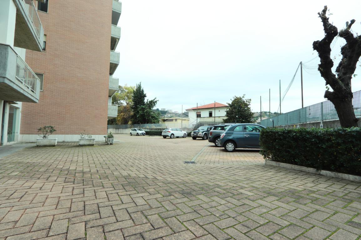 Nella corte condominiale sono presenti due posti auto assegnati (non di proprietà), utili e comodi in una zona così residenziale e vicina al mare. Inoltre l’area condivisa beneficia di un accesso diretto che conduce verso la Strada Parco e il piccolo giardino adiacente.